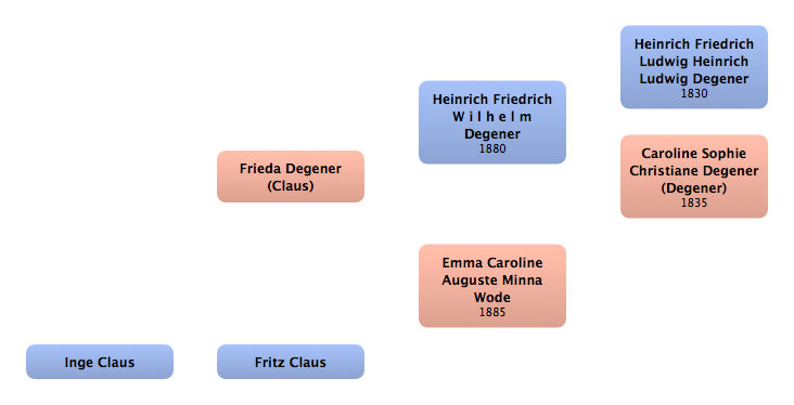 Friedrich Wilhelm Heinrich Degener | Cousin 3. Grades | 1895 | | | |