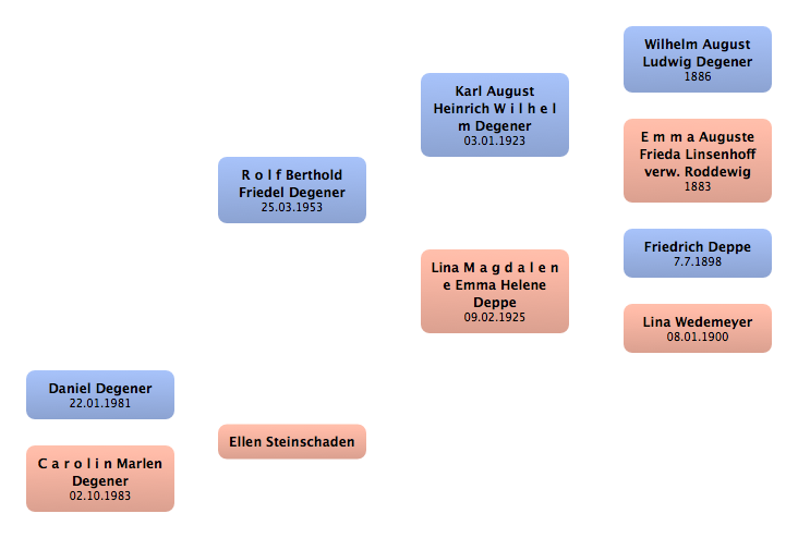A u g u s t Friedrich Wilhelm Degener | Onkel 5. Grades | 1899 | | 1966 | |